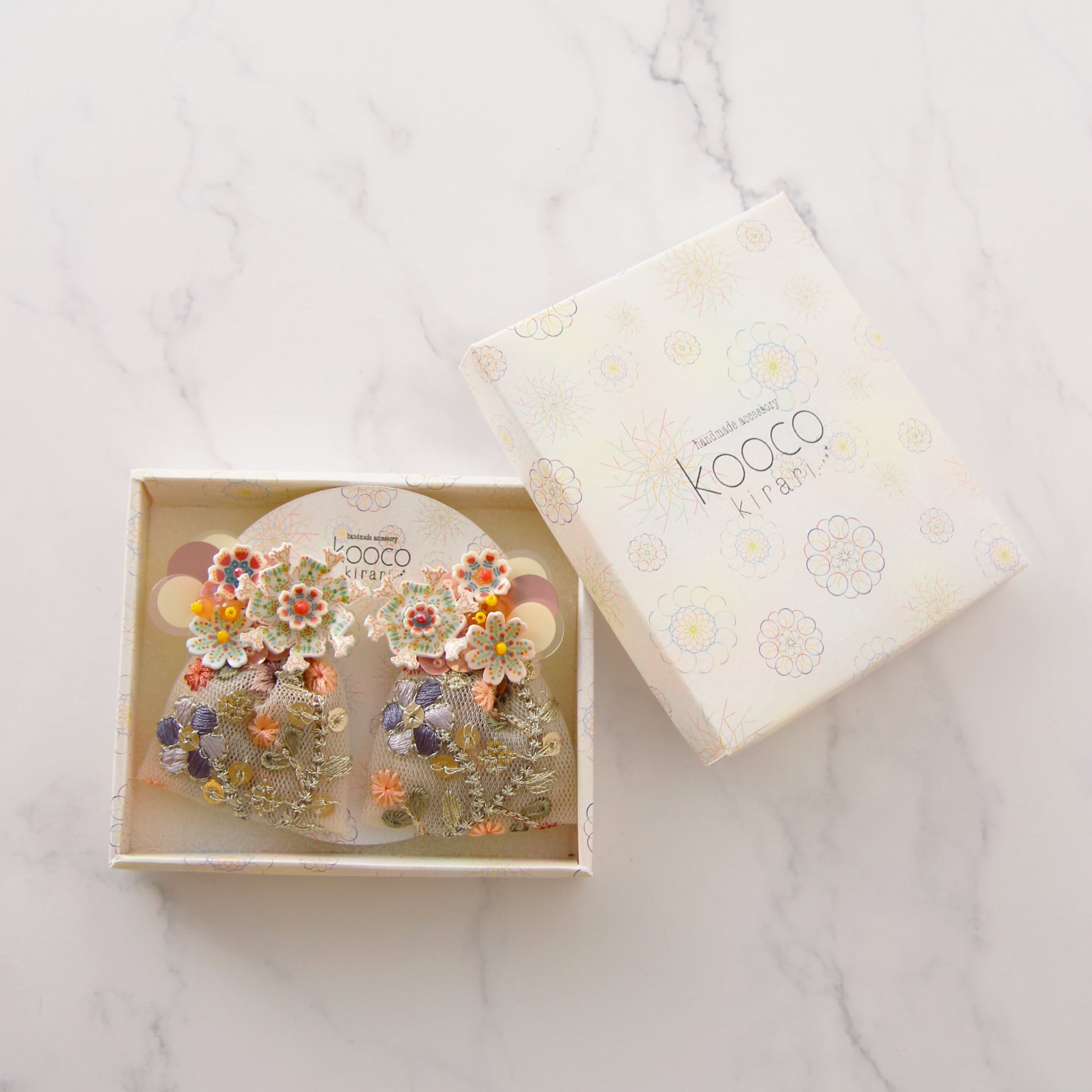 ※左右のお花のデザインが少し違う アシンメトリーデザインです。素材はプラバンなので軽く、耳の負担もありません。