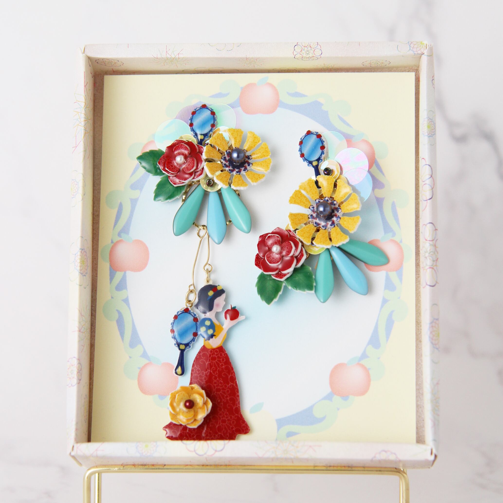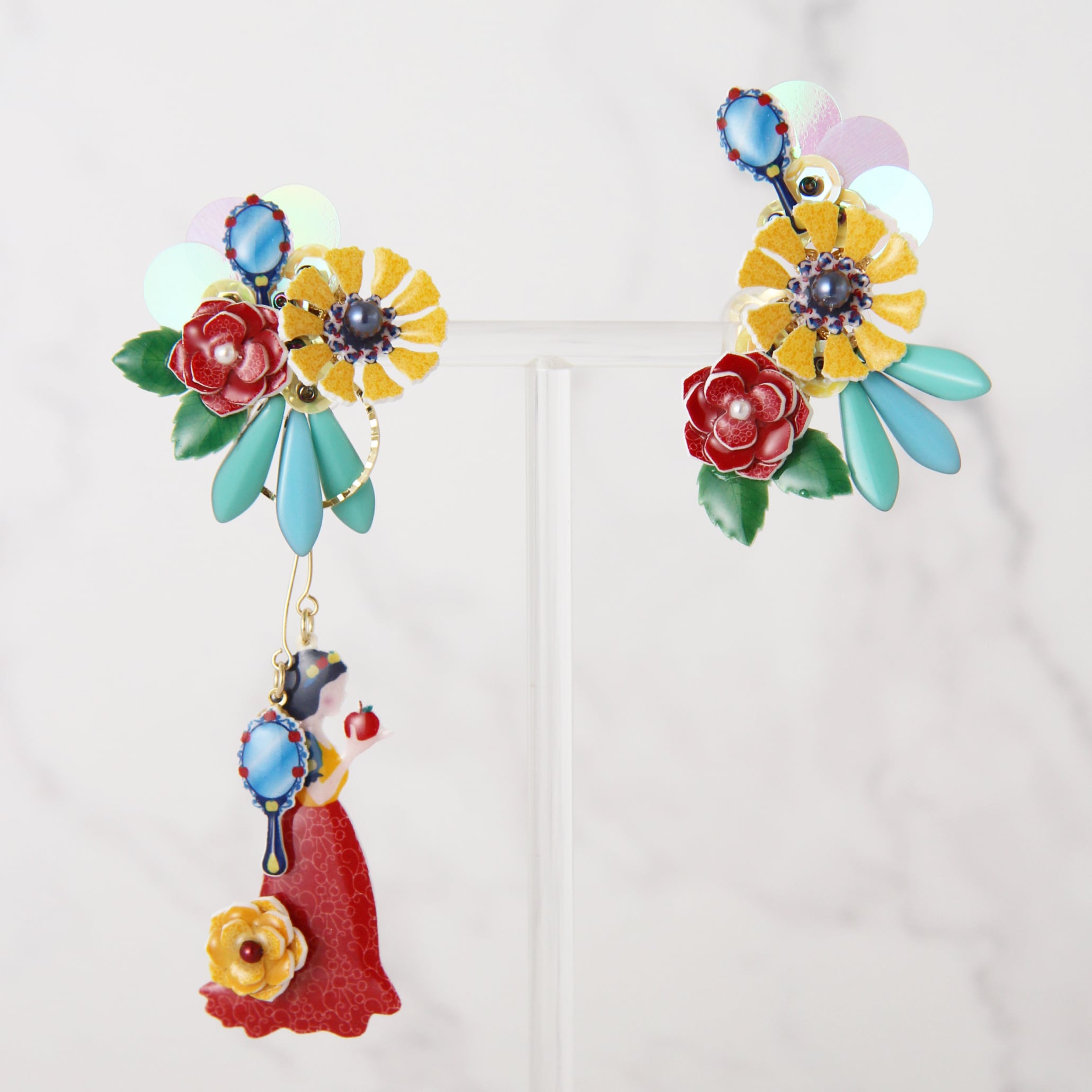 りんご姫の物語アクセサリー トリックアート風お花イヤリング/ピアス