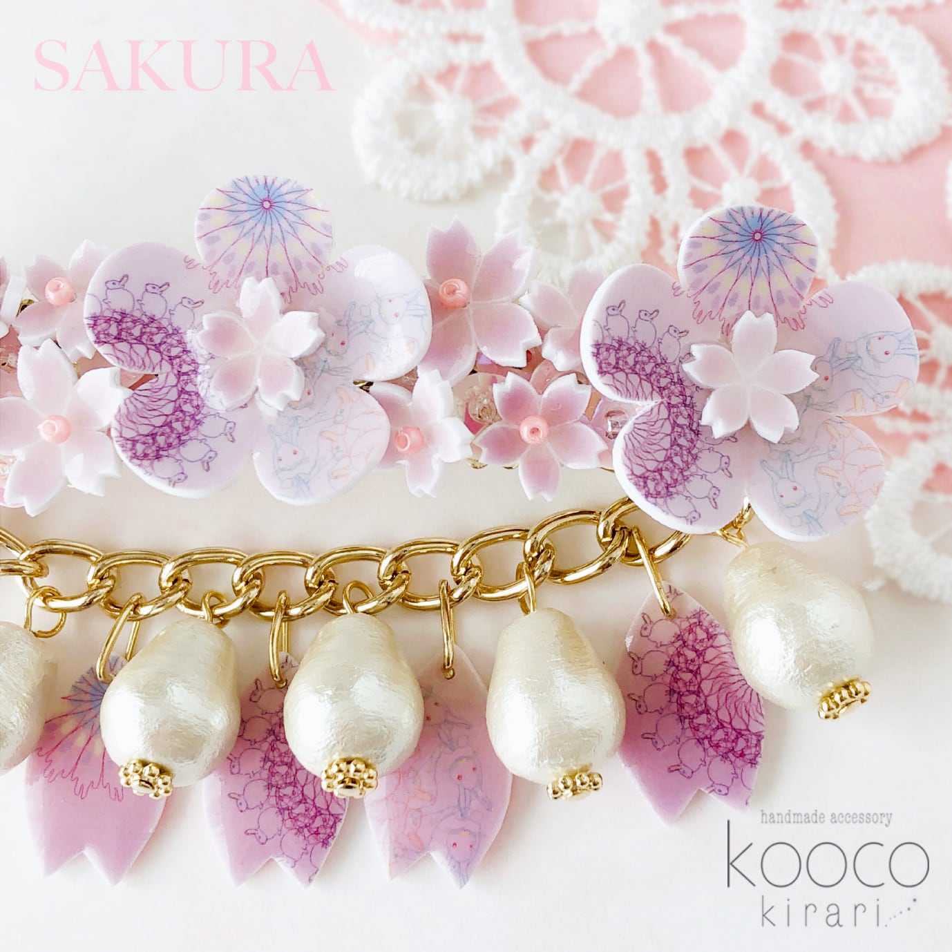 ⚫︎淡いピンクカラーに大きさの異なる桜の花を組み合わせ。