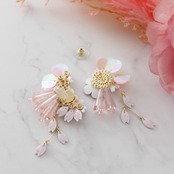 ※左右が決まっているアシンメトリーデザインです。素材はプラバンなので軽く、耳の負担もありません。