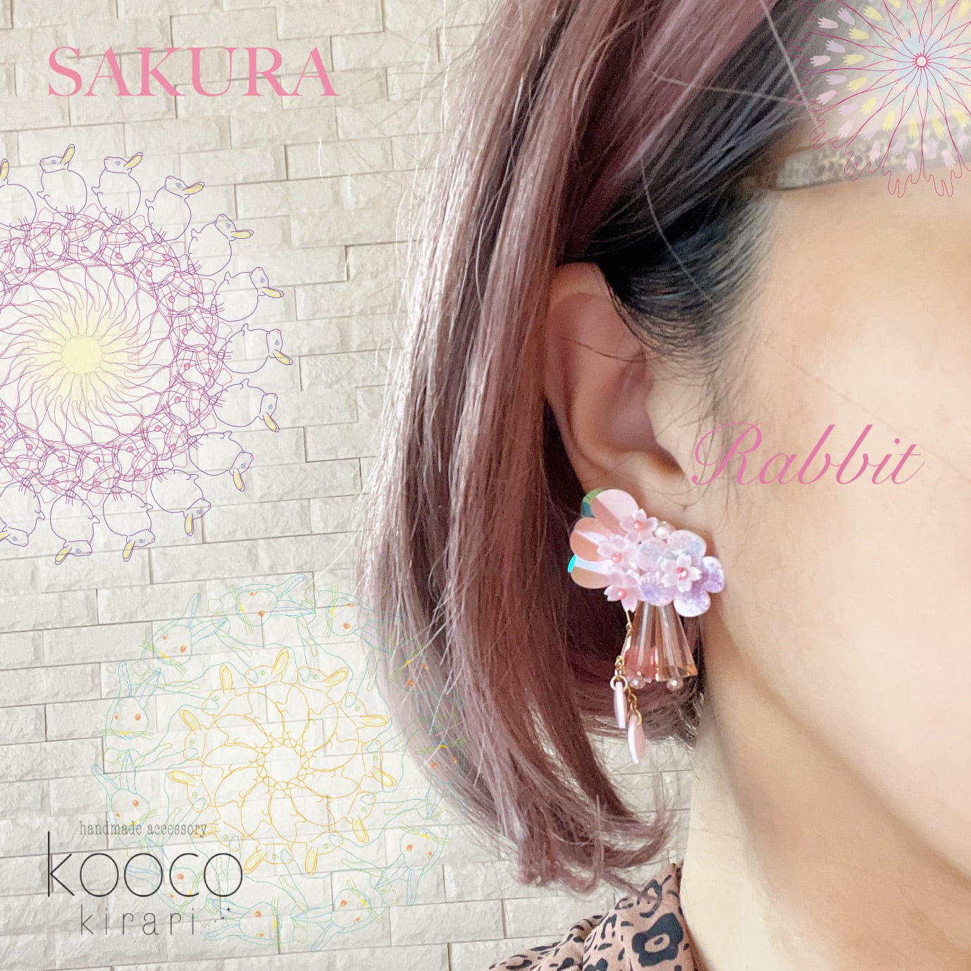 うさぎ柄の桜 ガラスビーズピアス/イヤリング