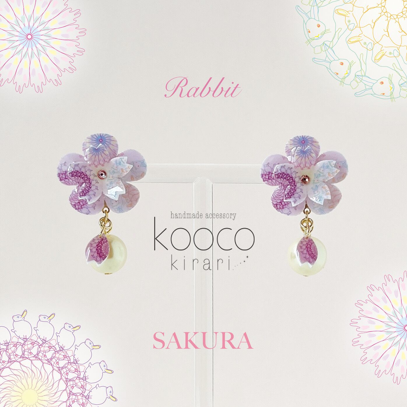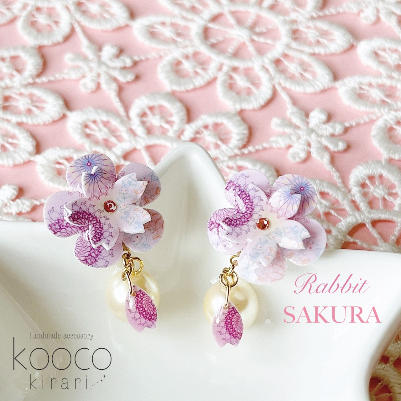ウサギ柄の桜 小ぶり ピアス/イヤリング