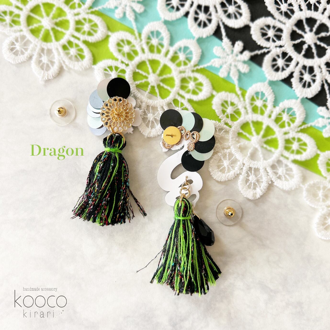 この龍&龍柄のお花ピアス/イヤリングは、あなたのオシャレに一味違った魅力を添えてくれることでしょう。
