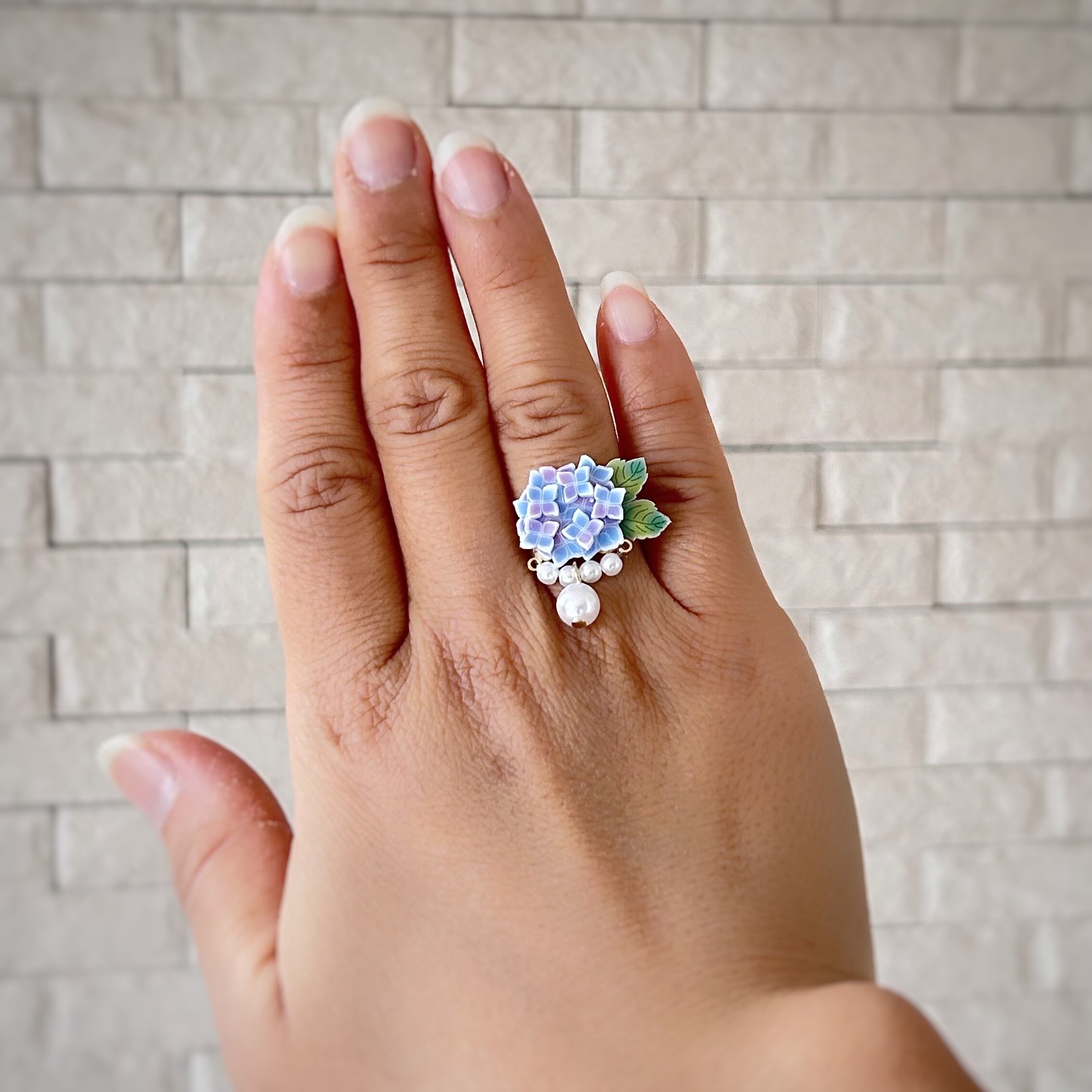 雨あがりの紫陽花をそのままギュッと閉じ込めたような、繊細なリングです。